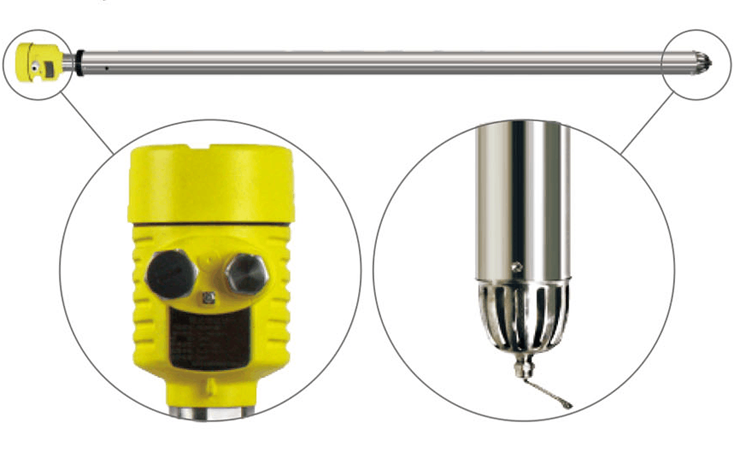 雷達(dá)式電子水尺,是基于TDR時(shí)域反射和ETS等效時(shí)間采樣技術(shù)的接觸式雷達(dá)水位計(jì),俗稱雷達(dá)式電子水尺,或雷達(dá)水尺。電子倉發(fā)射微波脈沖,沿著導(dǎo)波桿傳輸。當(dāng)微波遇到水面時(shí),反射波沿導(dǎo)波桿傳回電子倉,超高速計(jì)時(shí)電路精確計(jì)算出傳導(dǎo)時(shí)間,實(shí)現(xiàn)水位的精確測(cè)量。雷達(dá)式電子水尺,是工業(yè)測(cè)距雷達(dá)在水位測(cè)量領(lǐng)域的創(chuàng)新應(yīng)用,實(shí)現(xiàn)了電子水尺向高精度(毫米級(jí)),大量程(30米),高可靠,安裝簡便,免維護(hù)的技術(shù)跨越。雷達(dá)式電子水尺通過標(biāo)準(zhǔn)信號(hào)接口,與計(jì)算機(jī)、PLC等連接,也可以與相應(yīng)的顯示、記錄、控制裝置(如RTU)連接,構(gòu)成水位監(jiān)測(cè)系統(tǒng)。