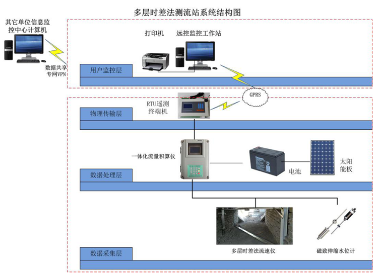 ●多層次結構:本測流系統(tǒng)采用2、3、4層結構,通過測量不同水深的曾流速,并多次取值,通過數(shù)據(jù)建模方式求得0.6H處平均流速,具有極高的準確性;